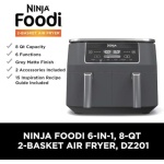 Ninja DZ201 Foodi 8 Quart 6-in-1 DualZone 2-Basket Air Fryer with 2 Independent