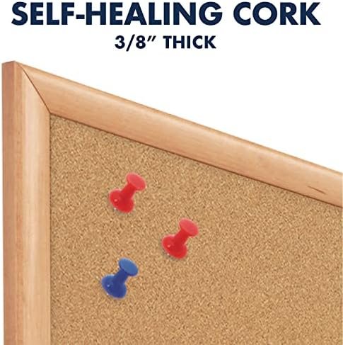 Quartet Cork Board Bulletin Board, 23″ x 35″ Framed Corkboard, Oak Frame